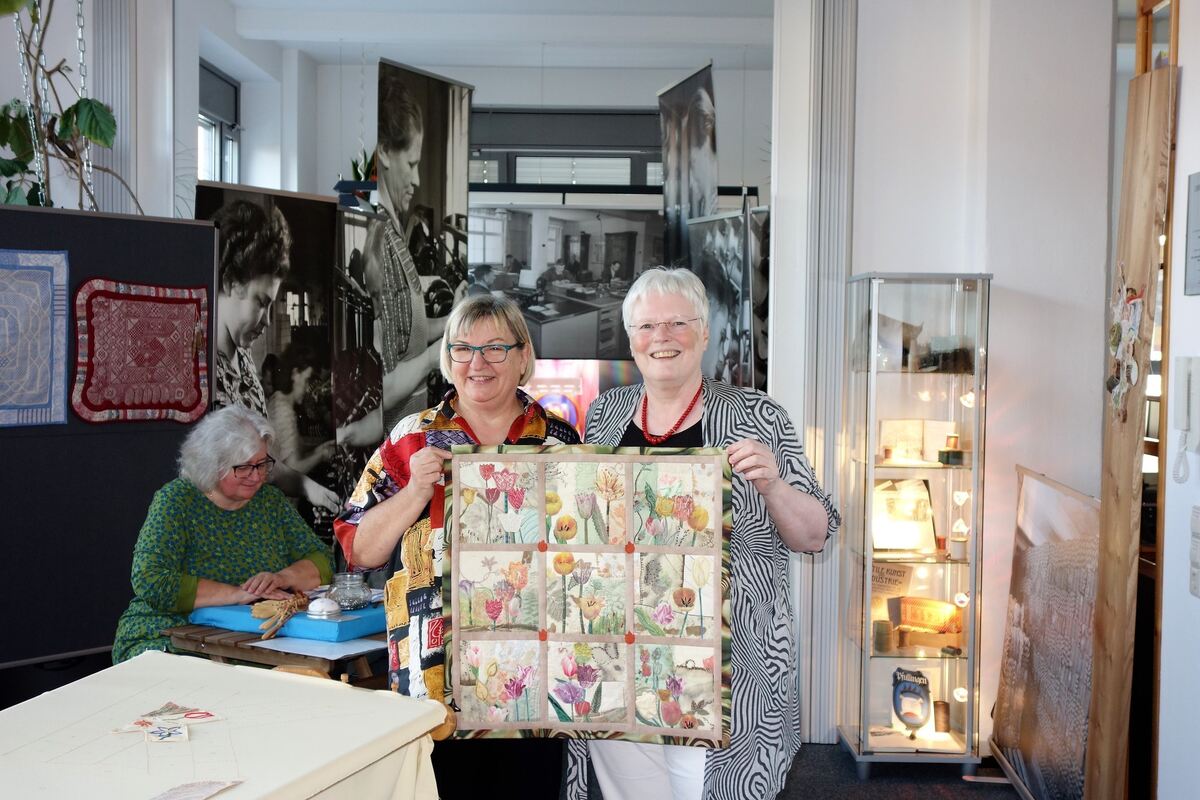 »Die Fabrik war der zweitgrößte Arbeitgeber in Pfullingen. Das muss man einfach würdigen«, erklärte Waltraud Pustal. Von der Stilllegung bis 1989 war das Gebäude Bettenlager des THW. Die Firmengeschichte hat Pustal akribisch in einem Flyer aufgearbeitet und auch eine Postkartenserie dazu erstellt. Die Professorin war es auch, die drei Damen eingeladen hatte, deren Kunstwerke zum Thema »Faden« mindestens eben so viel Aufmerksamkeit erregten.