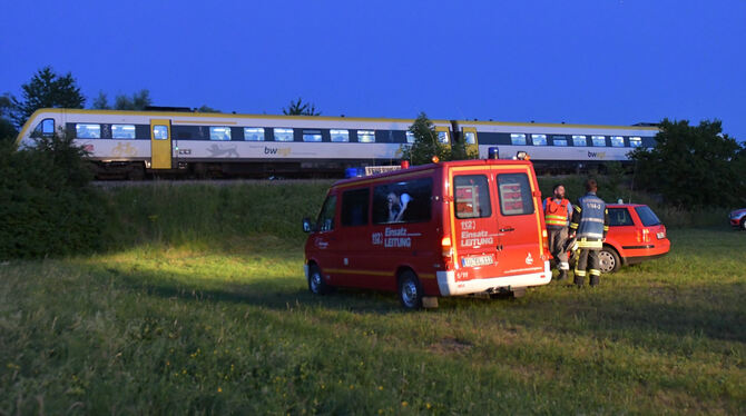MÖSSINGEN/NEHREN. Der Zugführer des Interregio-Express (IRE), der am Mittwoch gegen 21 Uhr von Tübingen in Richtung Mössingen unterwegs war, hatte im Bereich von Nehren zwei Personen an den Bahngleisen gesehen. Weil er befürchtete, dass die beiden möglicherweise von einem der beiden Waggons erfasst oder durch den Luftzug des Schnellzuges zur Seite geschleudert worden sein könnten, brachte er seine Triebwagen mit einer Notbremsung zum Stehen. Der IRE kam auf dem Damm an der Brücke über dem Nordring, nahe dem Verbindungsweg zwischen dem Ofterdinger Friedhof und dem Mössinger Industriegebiet Schlattwiesen zum Halten. Nur einen Kilometer vor dem Mössinger Bahnhof, wo er eine Minute später planmäßig um 20.11 Uhr eingefahren wäre.