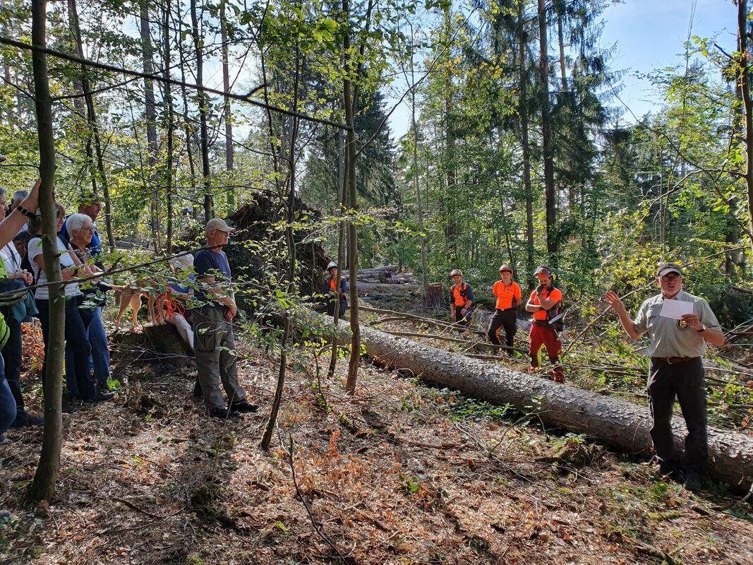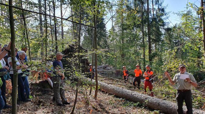 Revierförster Joachim Kern (rechts) gab einen Überblick und zeigte Beispiele. FOTO: STURM