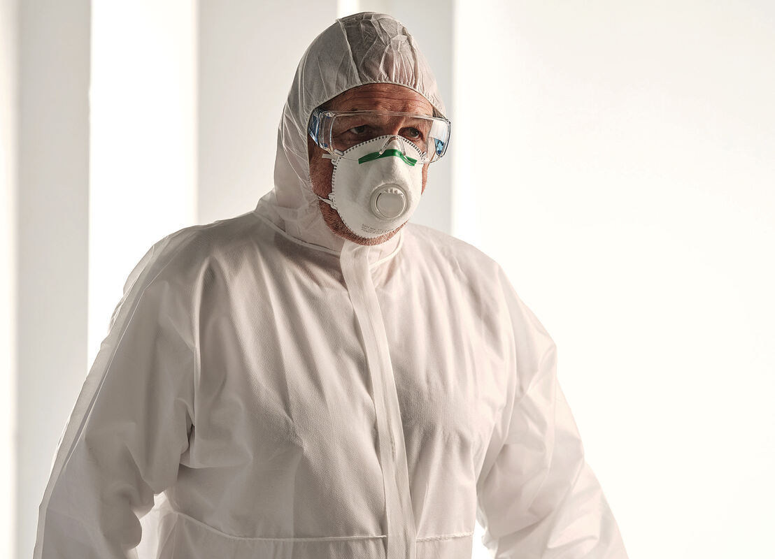 Das Ausgangsmaterial für die Schutzausrüstung sind Spezial-Vliesstoffe, die auf Hightech-Produktionsmaschinen und -Anlagen, die rund um die Uhr prozesssicher laufen müssen, gefertigt werden. Der Spezial-Vliesstoff ist aus Kunststoff, sehr dünn, leicht, extrem reißfest und atmungsaktiv. Je nach Ausführung bietet er eine hohe Widerstandsfähigkeit gegen Wasser, Abrieb, Alterung und verhindert das Eindringen von Bakterien und Viren.