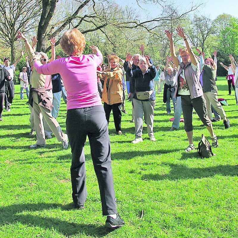 Dora Ballbach vom Stadtseniorenrat bringt ihr Publikum in Schwung.