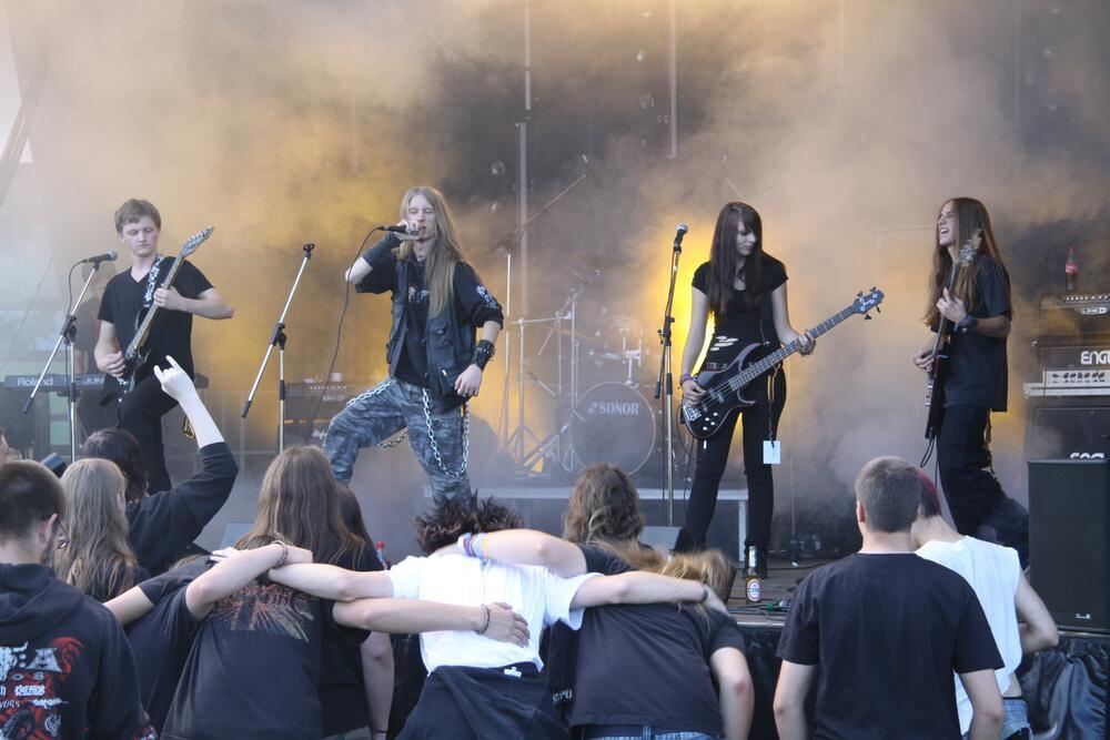 Die Güterschuppen-Band Spit Blood auf der Bühne.