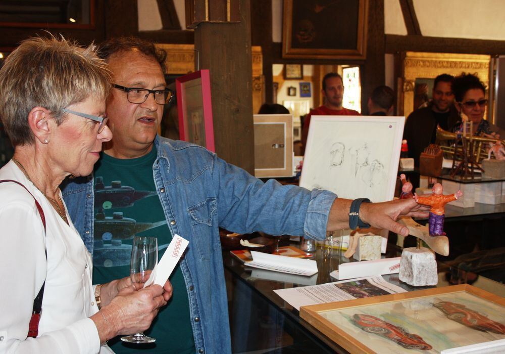 Mirel Duta (66) erklärt seine mit Kaffee gemalten Oldtimer. FOTO: STRAUB