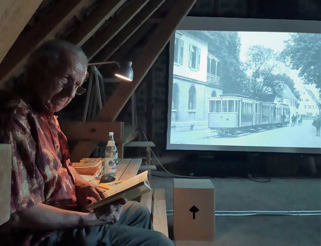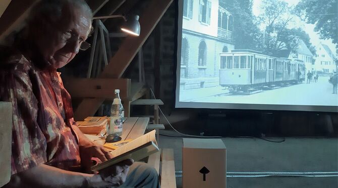Eulenspiegel in der Straßenbahn: Der Betzinger Autor Hellmut G. Haasis las im Farrenstall. FOTO: STRAUB