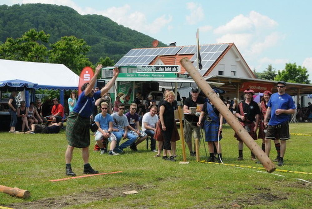 Highland-Games, ob im Mutterland Schottland oder am Talheimer Albrand, sind nichts für Schwächlinge: Beim Baumstamm-Weitwerfen muss sich das Holz auch noch um die eigene Längsachse drehen, ehe der Wurf gewertet wird.
