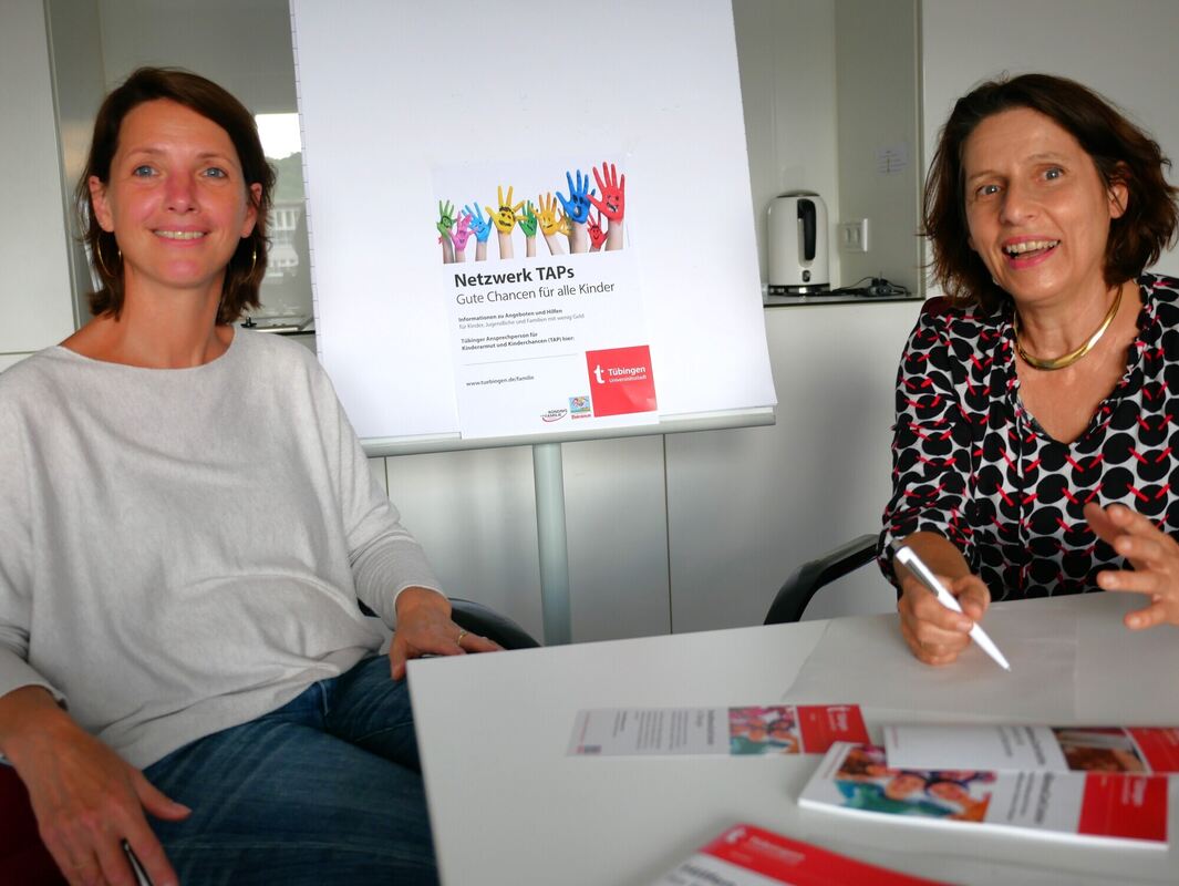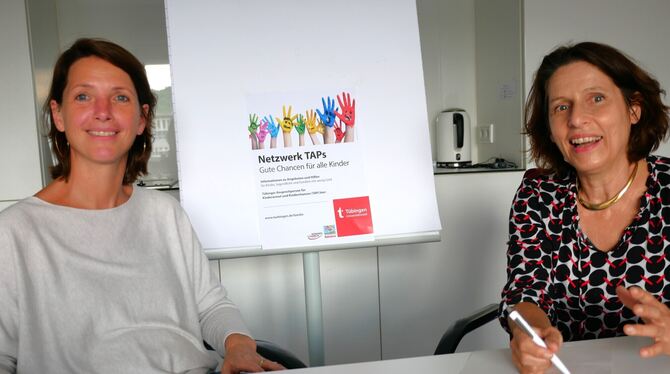 Ann-Marie Kaiser (links) und Elisabeth Stauber haben das TAP-System zur besseren Verbreitung von Informationen über Hilfen gegen Kinderarmut in der Neckarkommune ausgetüftelt und weiterentwickelt. FOTO: LEISTER