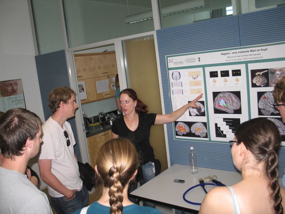 Eine halbierte Welt im Kopf? Mitarbeiterin Bianca de Haan erklärt Besuchern im Institut ihr Forschungsgebiet.