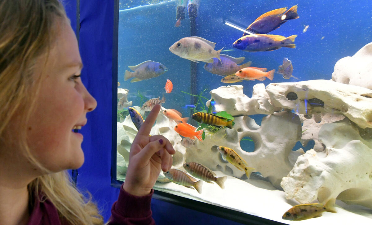 Buntbarsche aus Ostafrika: Lea Bieger ist sichtlich begeistert von der Terrarienschau in Mössingen. FOTO: MEYER