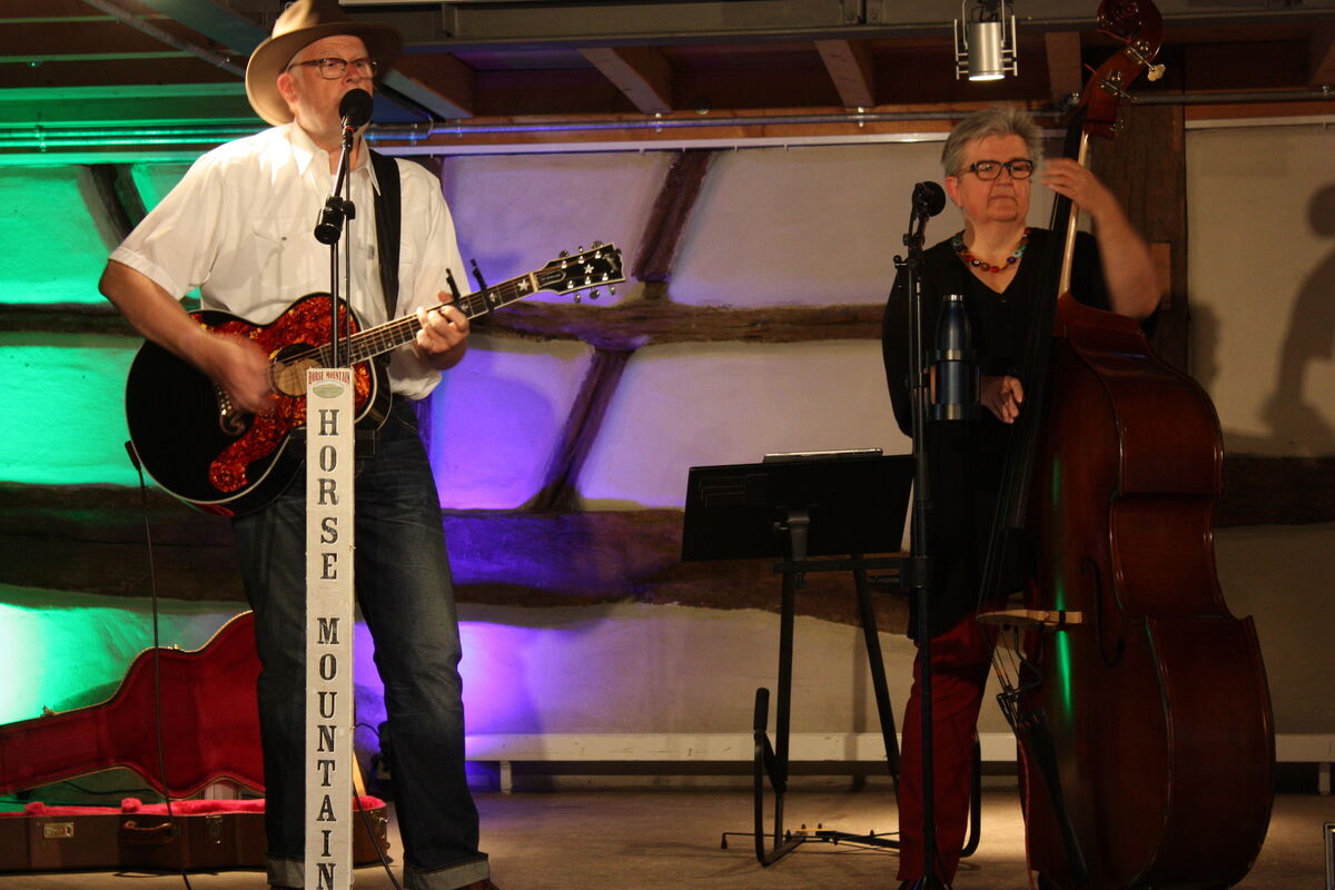 Das Duo Horse Mountain (Dieter Stoll und Birgit Wanner-Stoll) beleuchteten im Klosterhof den Einfluss der Country Musik auf den deutschen Schlager. FOTO: STURM