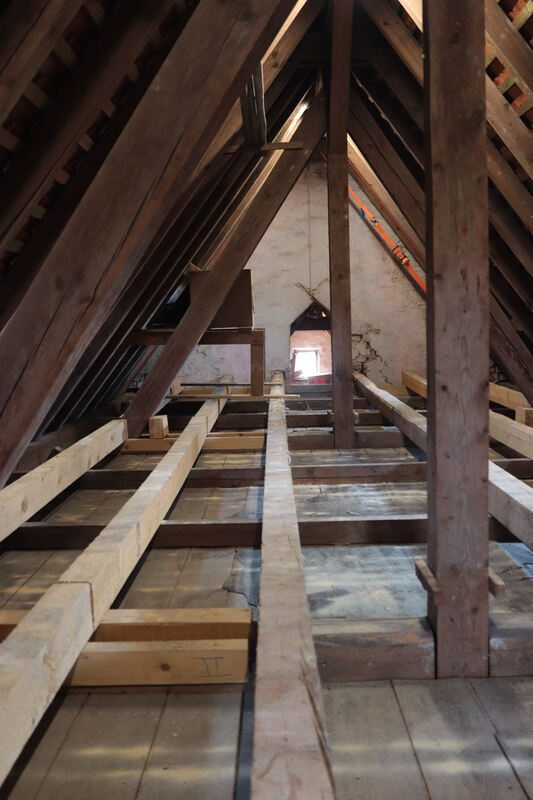 Die Larven des Hausbockkäfers wurden beim Ausbau des Dachbodens eingeschleppt. Sie haben auch in der Unterkonstruktion Spuren hinterlassen.