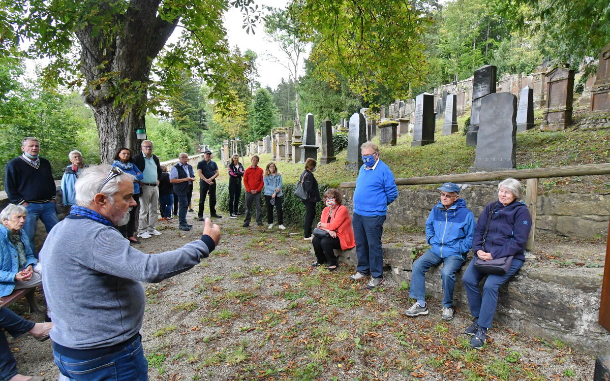 Spurensuche in Hechingen: Stadtführer Jörg Küster vor den Grabreihen des über 350 Jahren alten jüdischen Friedhofs. FOTO: MEYER