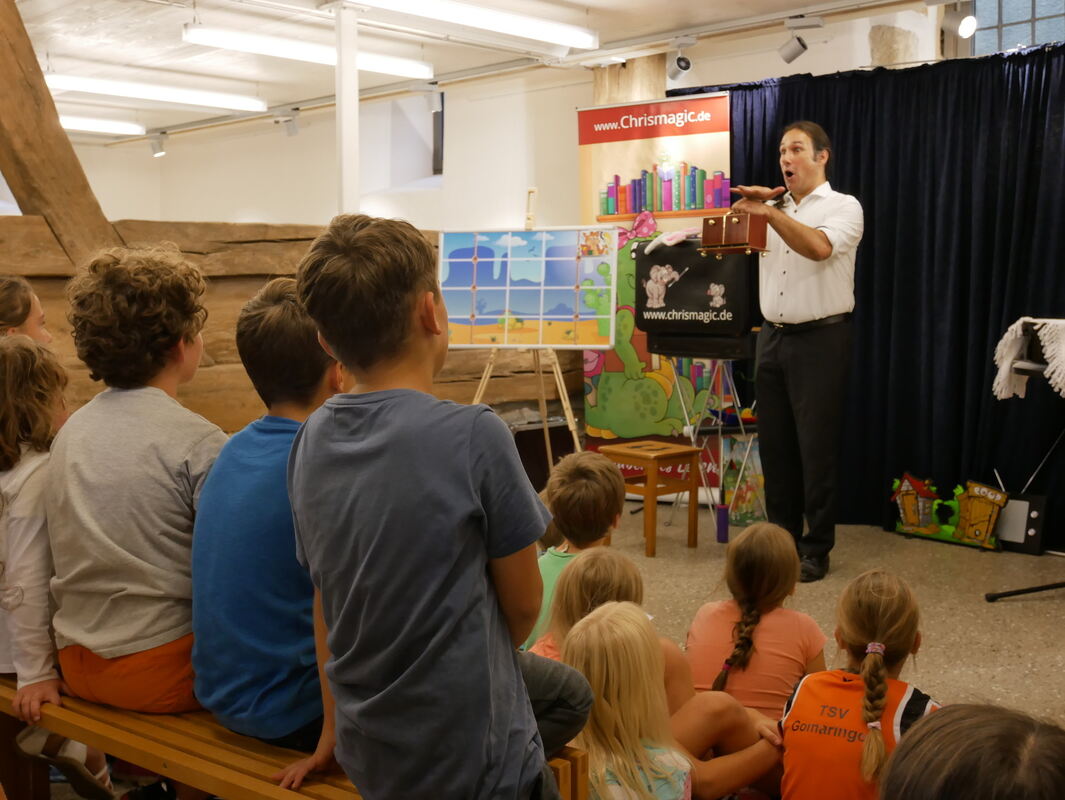 Zauberer Chrismacic kam zum Abschluss des Landesprojekts »Heiß auf Lesen« in die Gomaringer Bücherei. Der Bibliothek hat das Projekt viele neue Leser beschert. FOTO: HANISCH