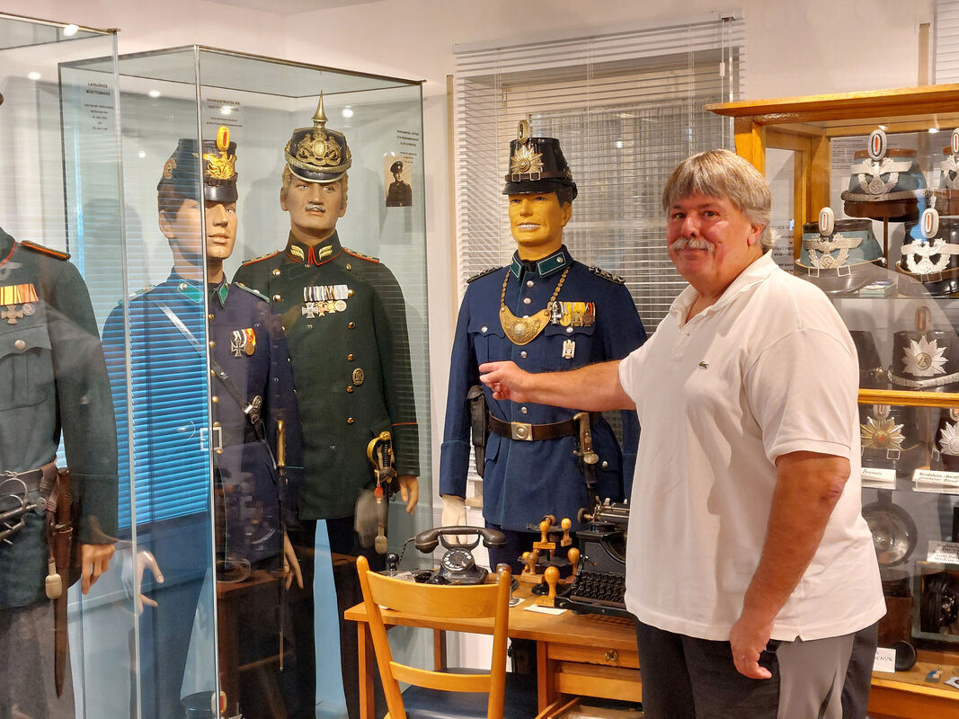 Komplette Uniformen und alles, was der Ordnungshüter so gebraucht hat im Laufe der Zeit. Bernhard Strobel mit seinen stummen Kollegen.