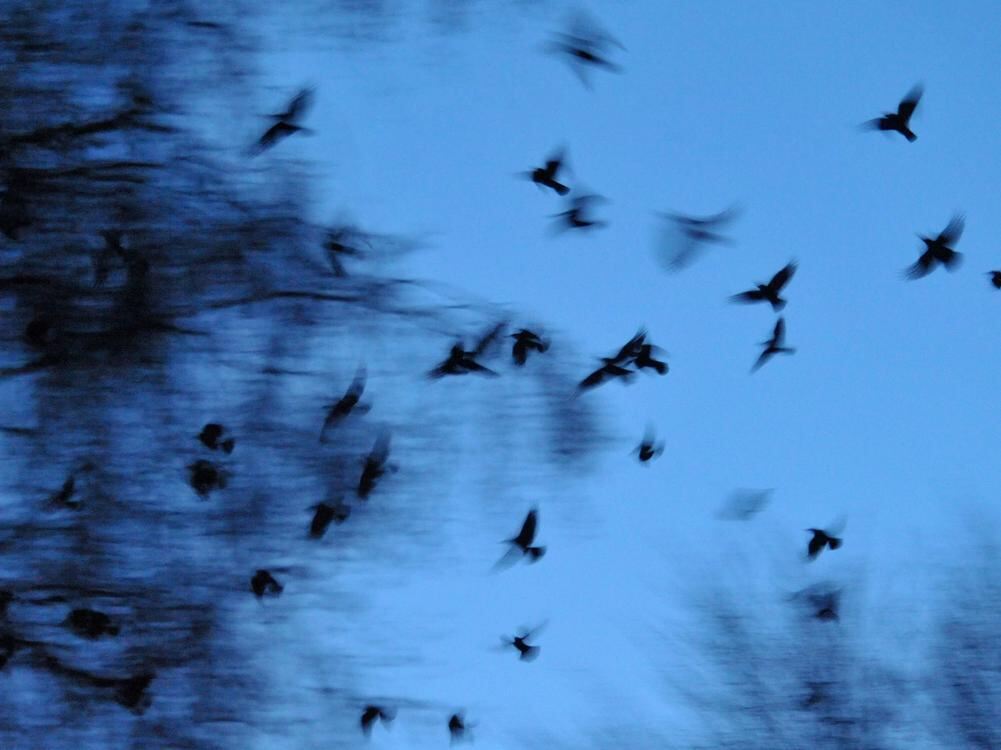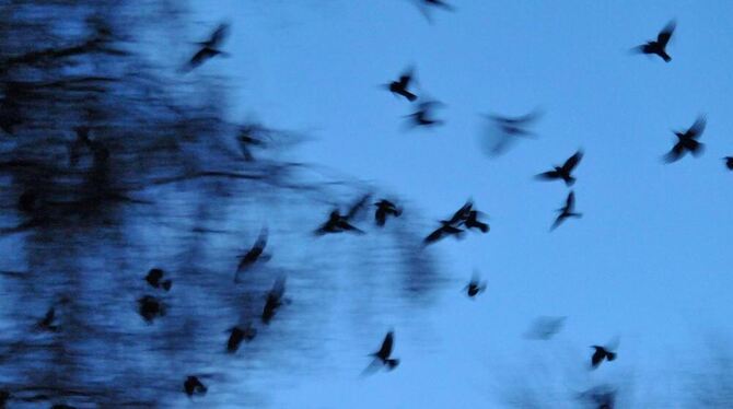 Massenstart zum Schlafplatz: Krähen sammeln sich.