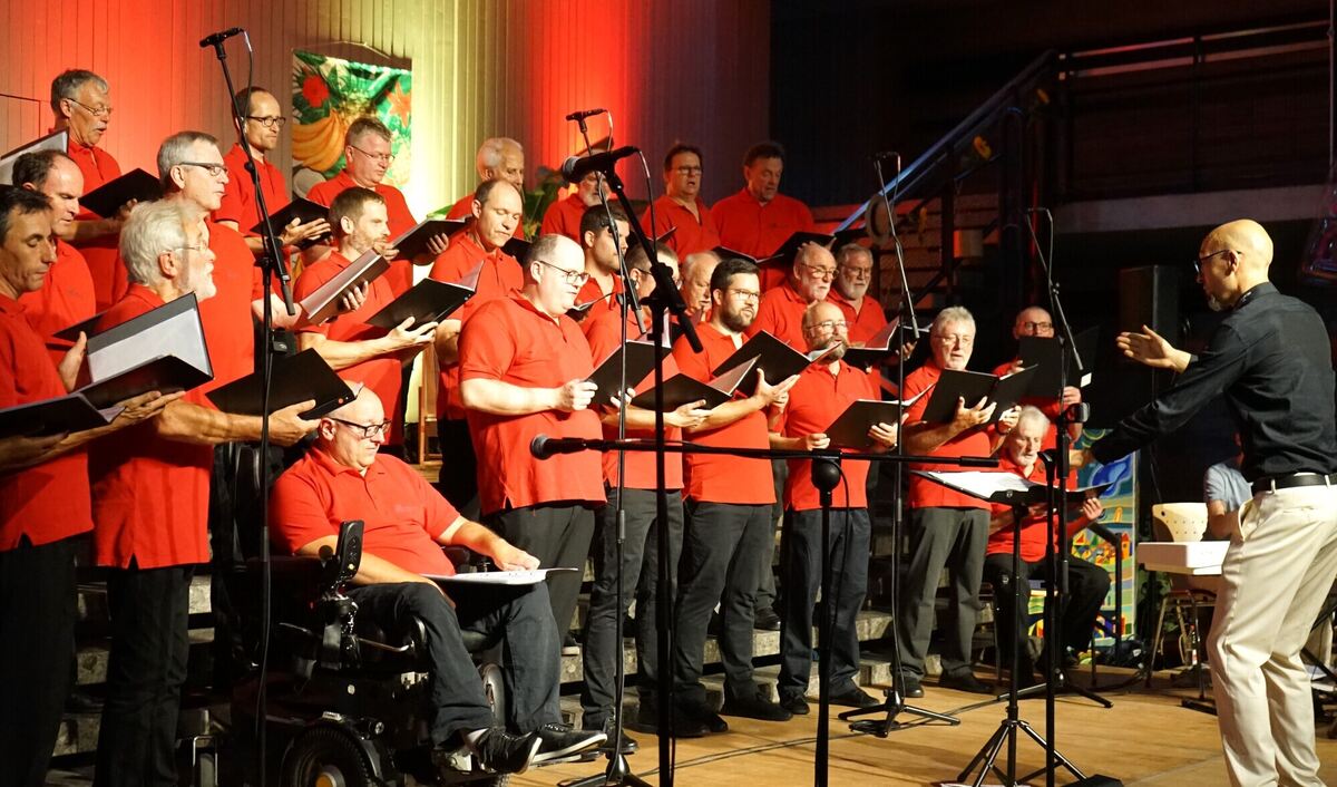 Der von Johannes Söllner geleitete Liederkranz Belsen singt »Sommerhitz« in der voll besetzten Mössinger List-Aula.