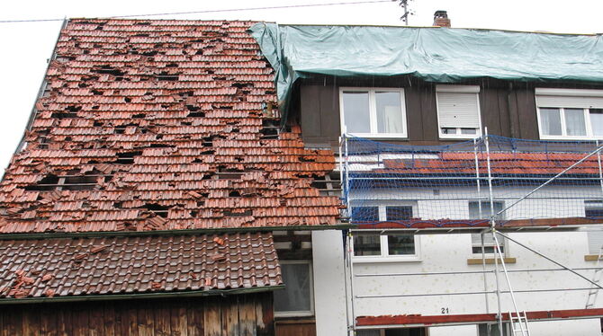 Häuser mit Schusswunden: Fast kein Ziegel liegt mehr auf seinem Platz in Jettenburg bei der Familie Kern.