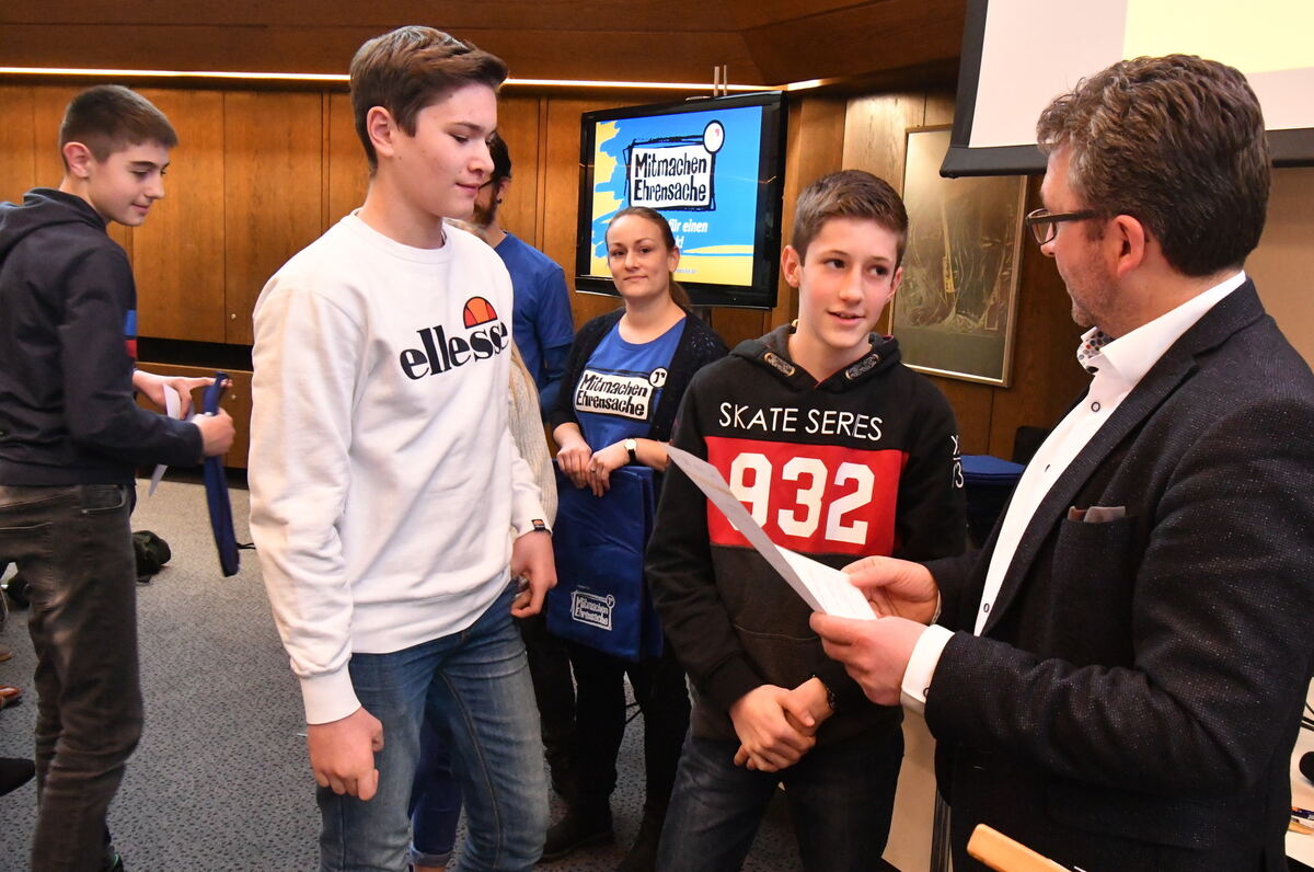 Schüler und Betriebe haben sich zum dritten Mal bei »Mitmachen Ehrensache« engagiert. Jugendliche, die ihren Lohn gespendet haben, werden ausgezeichnet. FOTO: MEYER