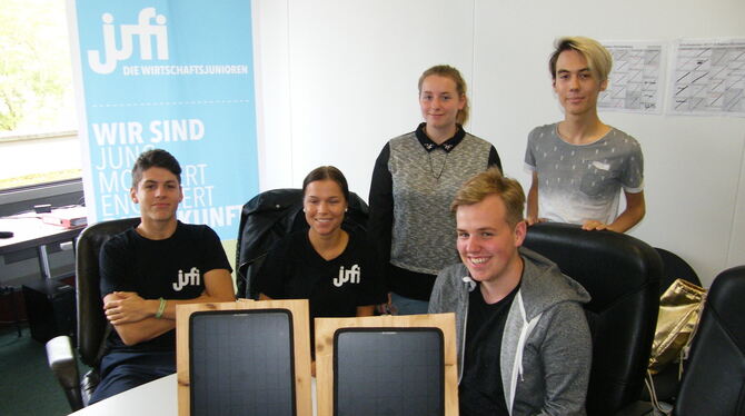 Mitglieder der Schülerfirma JuFi an der Wilhelm-Schickard-Schule Tübingen (von links): Niklas Ruck, Mathilda Nußbaum, Marie Engel, Simon Schneider und Kevin Feil. FOTO: MAIER