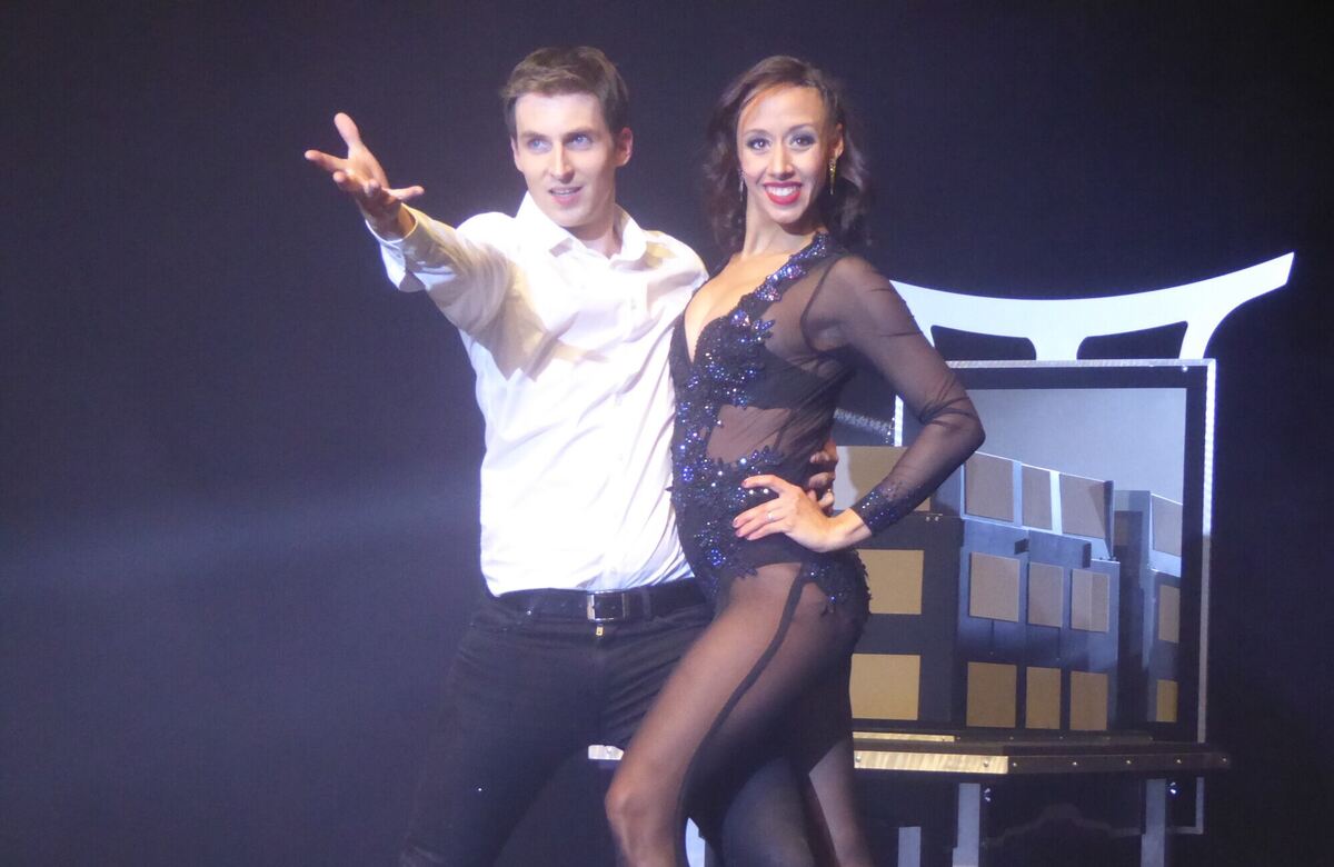Unversehrt entstieg Jennifer Martinez einer Kiste, die Zauberer Maxim Maurice mit 13 Degen gespickt hatte. FOTO: BERNKLAU