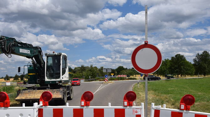 KIRCHENTELLINSFURT. Baustelle am Kreisverkehr – der übliche kurze Weg von Kirchentellinsfurt raus zum Mahden und nach Altenburg ist gesperrt. Autofahrer haben zwei Möglichkeiten: Entweder runter ins Neckartal und von dort nach Altenburg und weiter ins Gewerbegebiet Mahden oder über Sickenhausen. Die Umleitungen sind ausgeschildert.