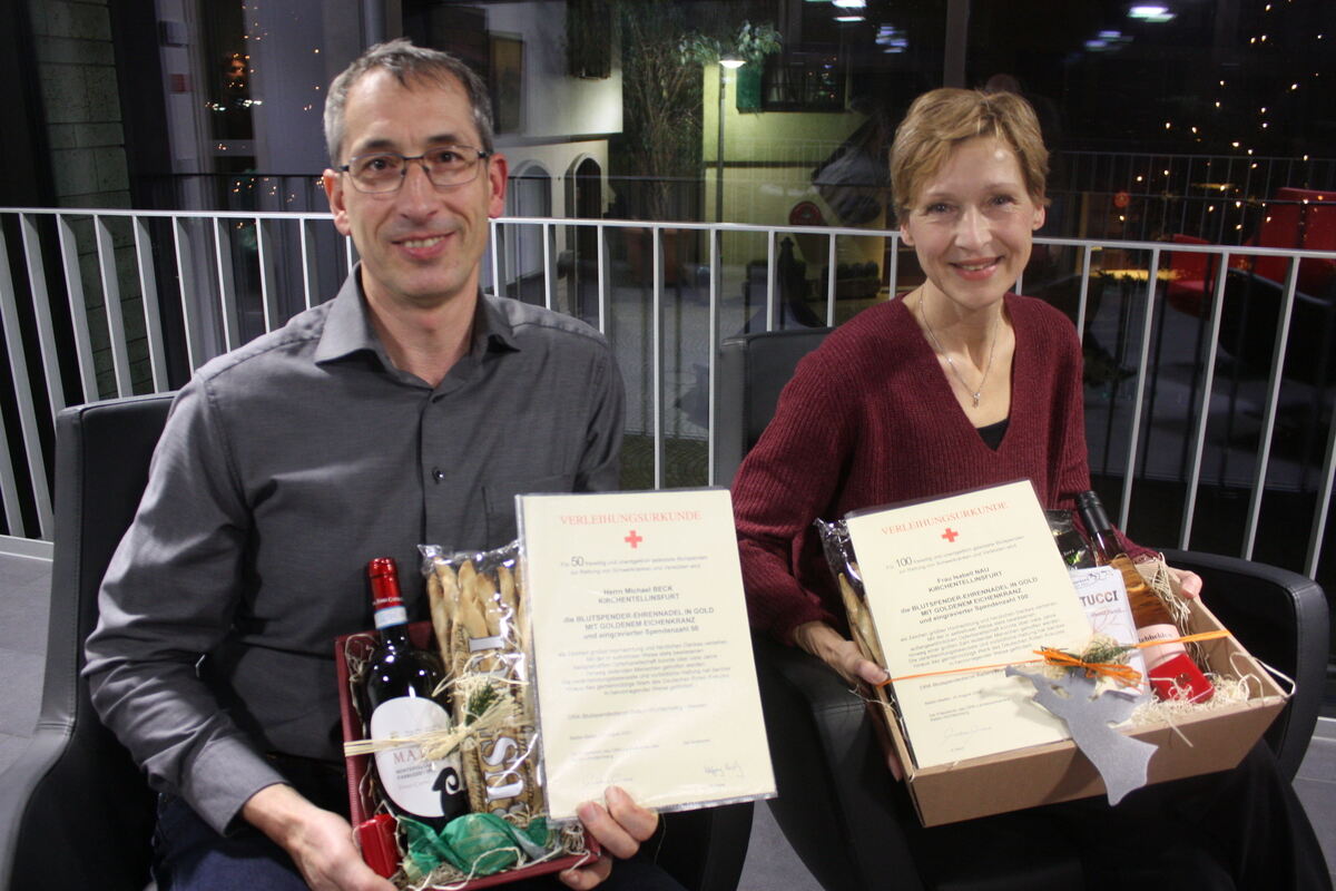 Michael Beck (50) und Isabell Nau (100) wurden im Kirchentellinsfurter Gemeinderat für die runde Zahl ihrer Blutspenden geehrt.