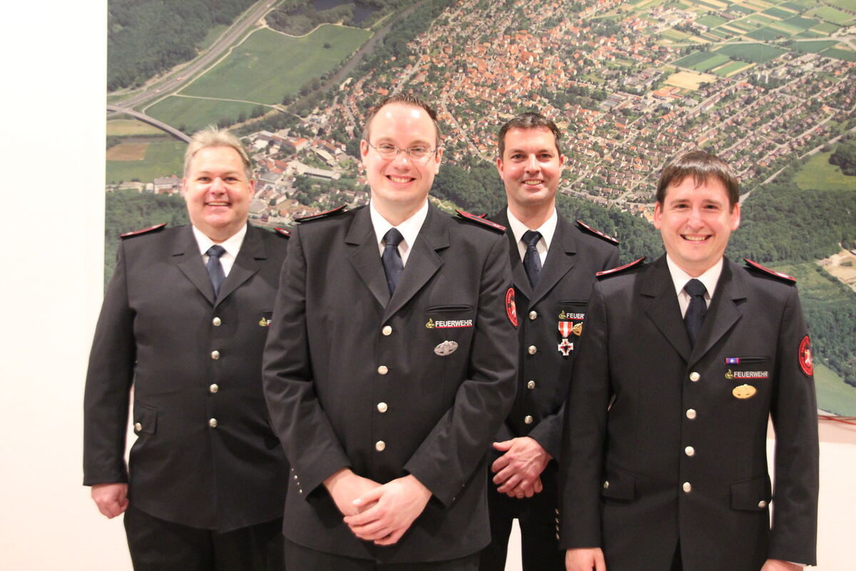 Die neue Führung der Kirchentellinsfurter Feuerwehr: Holger Sulz, Patrick Schuparra, Thomas Heusel und Thomas Walker (von links). FOTO: MELANIE ARMBRUSTER