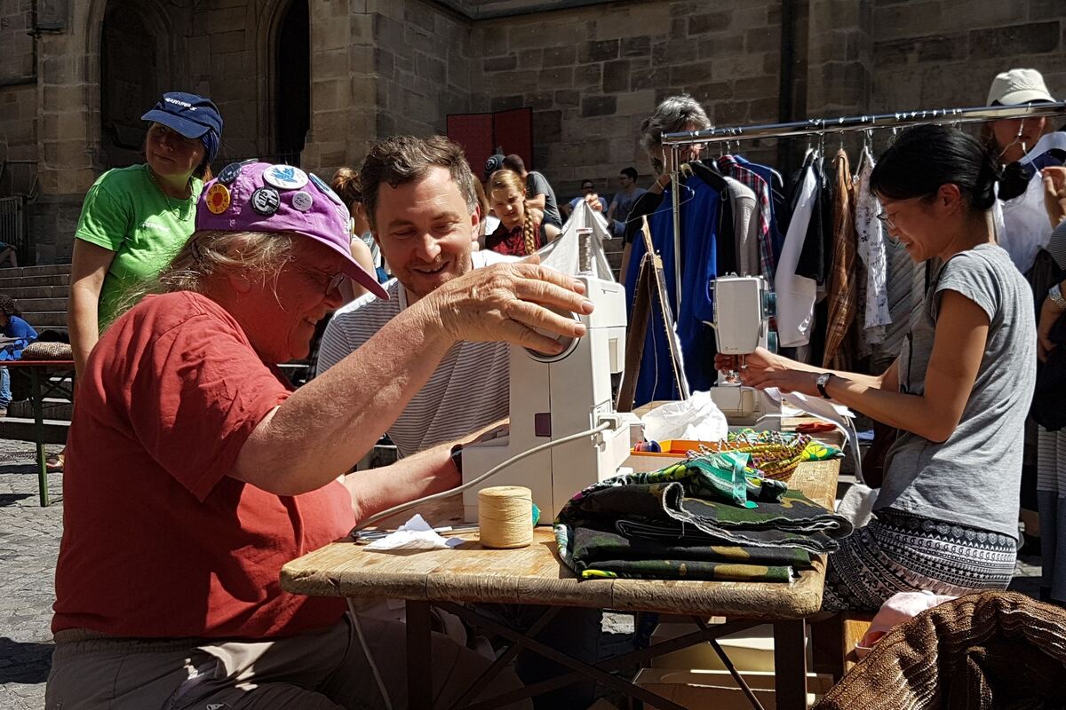 Kleidertausch- und Flickaktion von Greenpeace auf dem Tübinger Holzmarkt. FOTO: SEF
