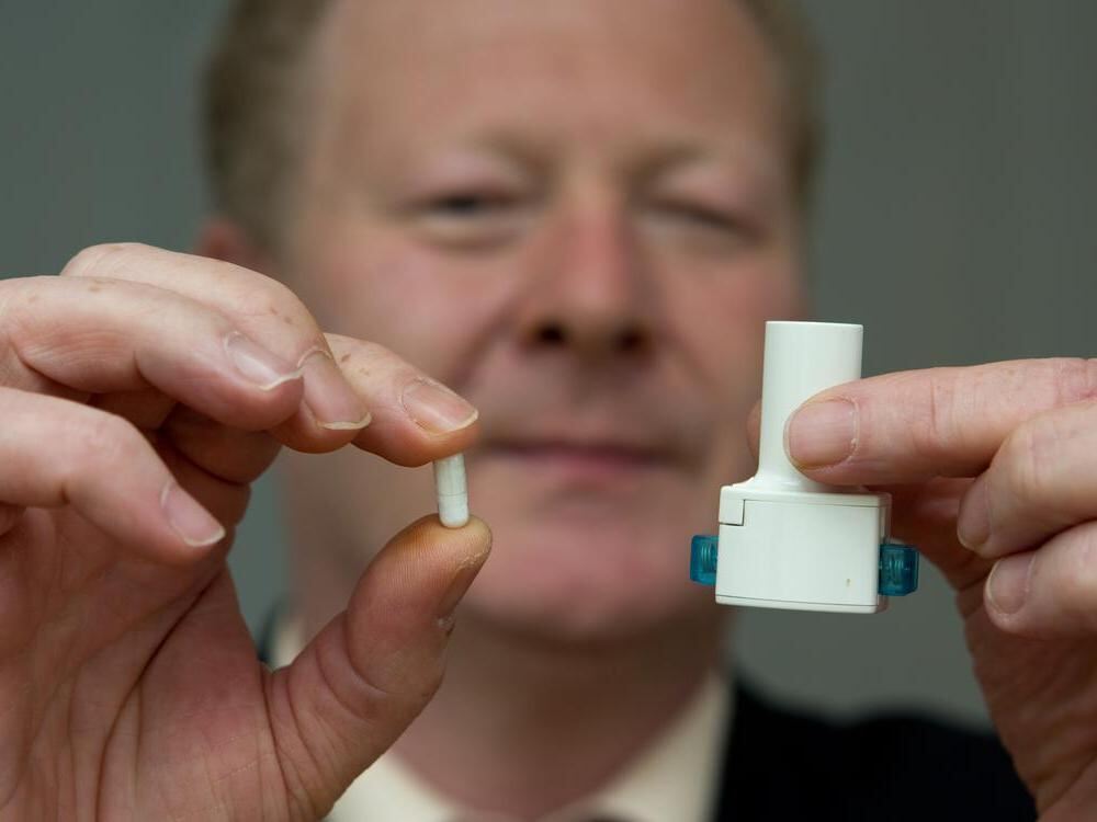 Joachim Riethmüller, Leiter des klinischen Studienzentrums der Kinderklinik, zeigt das neue Präparat.