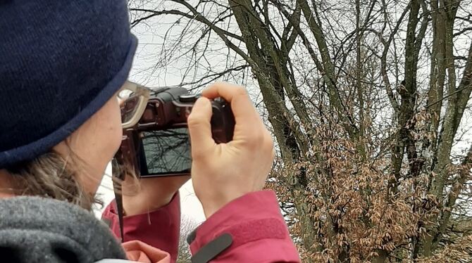 Durch die Eulen-Fotos in dieser Facebook-Gruppe ist auch ein anderer Fotograf, der an diesem Samstag vor Ort ist, auf die Tübinger Tiere aufmerksam geworden. Er ist extra aus Kirchheim angereist, berichtet er - und das schon zum zweiten Mal. Vor dem Baum, auf dem die Eulen sitzen, steht ein Schild: Man solle bitte nicht mit Blitz fotografieren, steht drauf. Das erschrecke die Eulen, die tagsüber schlafen. Die Zuschauer an diesem Samstag halten sich ans Regelwerk: Gesprochen wird nur im Flüsterton, geknipst nur ohne Blitz. Als der Regen wieder einsetzt, verschwinden ein paar, andere ziehen sich eine Kaputze über und bleiben stehen. So ein bisschen Regen verschreckt keinen waschechten Eulen-Fan. (GEA)