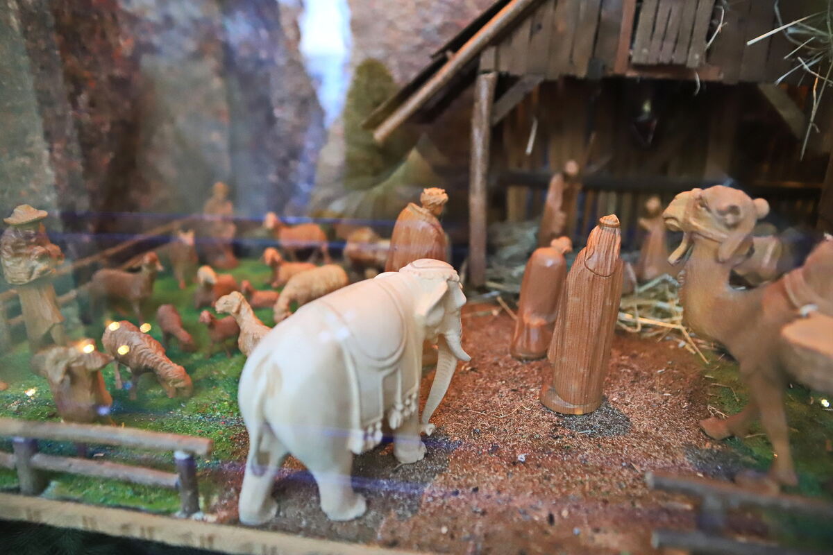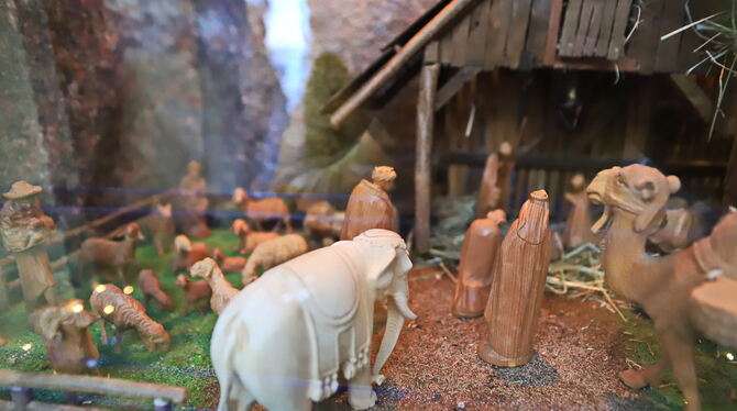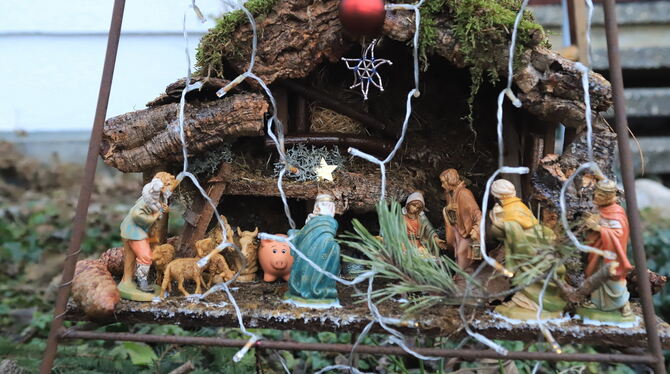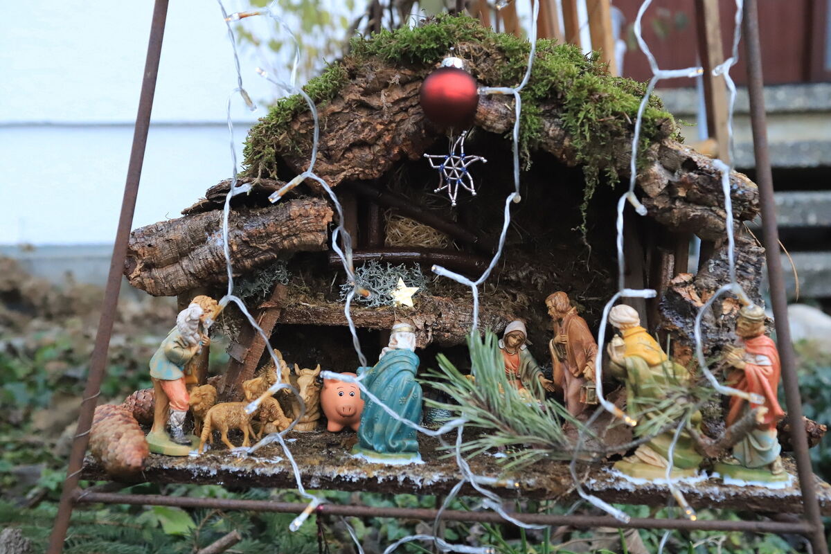 Wer hat sich denn da in die Krippe geschmuggelt? Im Akazienweg findet sich auch ein Schweinchen neben Ochs und Esel.