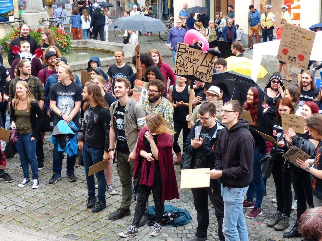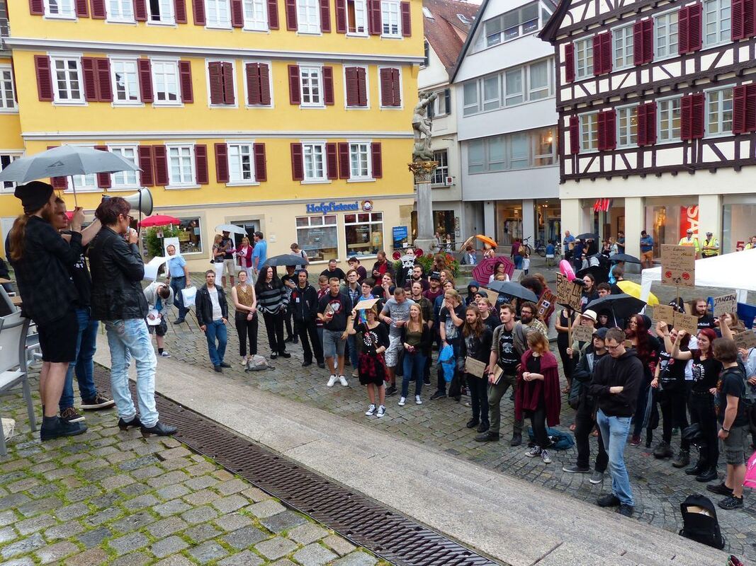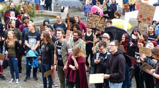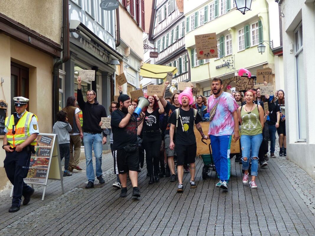 Man wolle sich das Feiern nicht verbieten lassen, lautete eine der Botschaften bei der Kundgebung auf dem Holzmarkt. Für ein vielfältiges Nachtleben gebe es aber immer weniger Einrichtungen. In diesem Zusammenhang kam auch das Thema Nachtruhe in der Innenstadt zur Sprache. Man wolle keinen Ärger mit den Anwohnern, sondern ein gutes Miteinander. Dafür stünden auch die neuen Hinweisschilder, die die Stadtverwaltung aufstellen ließ und in der Nachtruhe eingefordert wird. Nach der Kundgebung auf dem Holzmarkt zogen die Demonstranten über die Wilhelmstraße in den Bierkeller, wo es weitere Redebeiträge gab. (GEA)