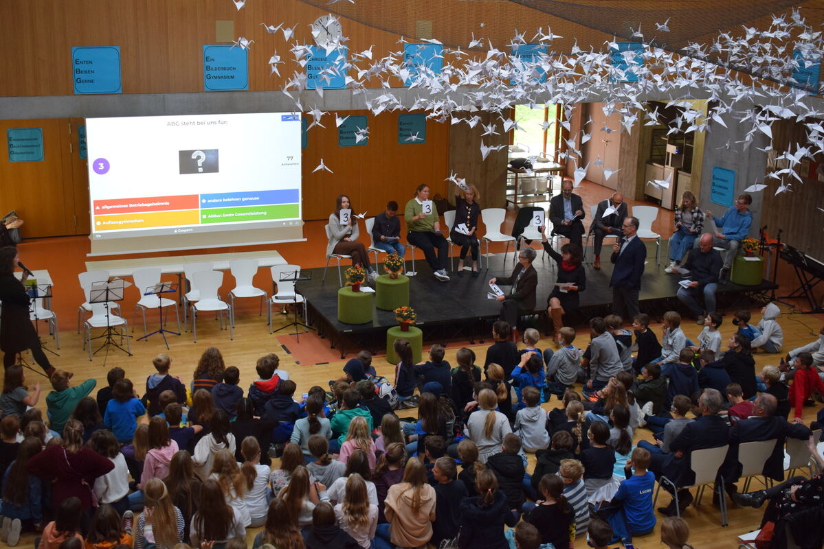 Bei einem interaktiven Quiz ging es unter anderem um die Bedeutung von Abkürzungen an der Schule. FOTO: STÖHR