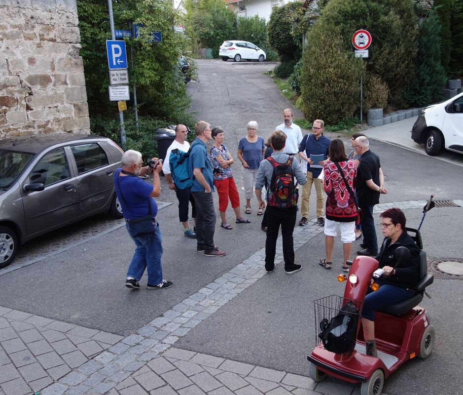Fußverkehrs-Check in Kusterdingen: Das Spielstraßenschild im Bild oben links ist fast völlig zugewachsen. FOTO: STRAUB