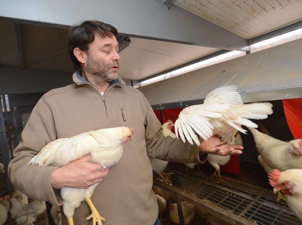 »Mädels« nennt Joachim Schneider seine Legehennen. Sie liefern im täglich ein Ei, je nach Farbe der Hühnerbäckchen weiß oder braun.