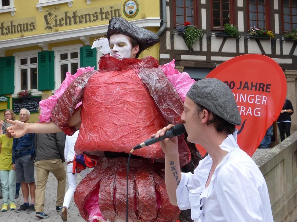Anschauliche Geschichte: Herzog Ulrich hat nichts mehr fürs Volk übrig, rechts Rapper Felix Gebel.