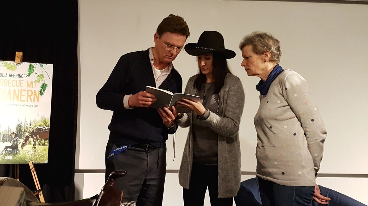 Stilecht mit Cowboyhut: Julia Behringer bei ihrer Veranstaltung im Deutsch-Amerikanischen Institut. FOTO: FRANZ