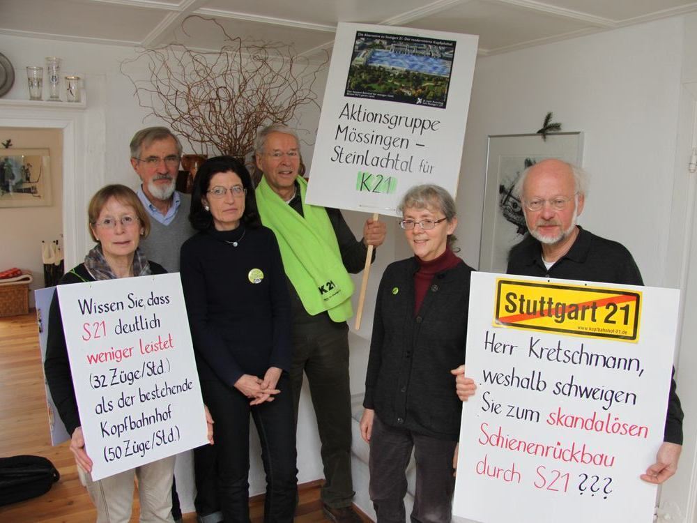 Vereint im gemeinsamen Kampf gegen Stuttgart 21: Dorothee Esche (Öschingen), Gerhard und Christa Wolf (Bodelshausen), Ulrich Sommer (Belsen), Hannefriedel Meyer-Faude (Ofterdingen) und Albrecht Esche (Öschingen).
