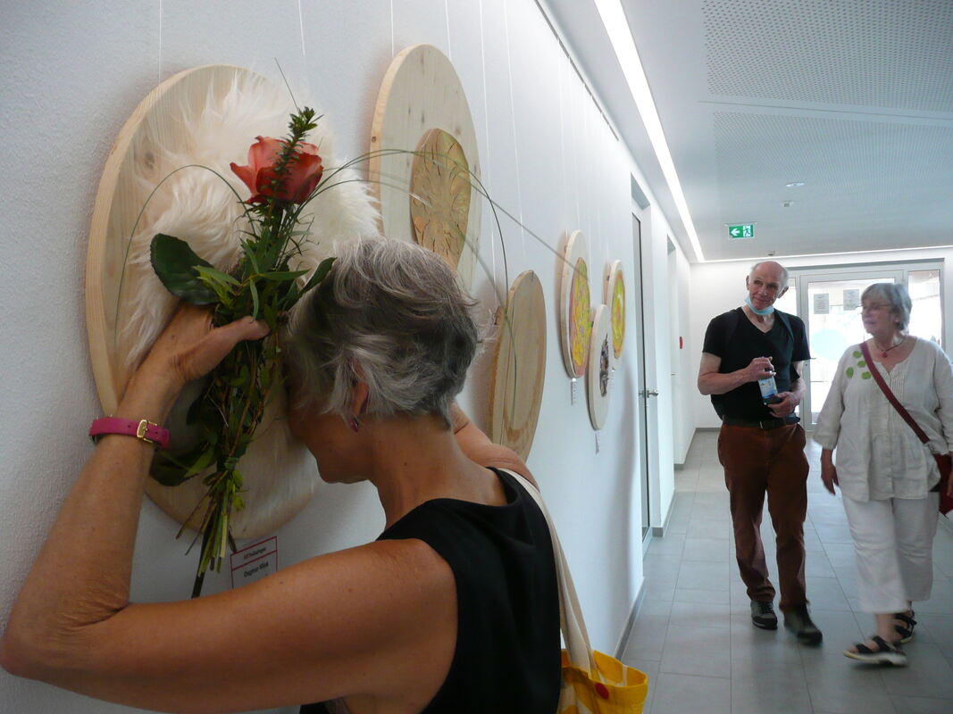 Zum Reinkuscheln: Künstlerin Dagmar Klink versenkt ihren Kopf in ihrem Triptychonwerk »Hingabe«.