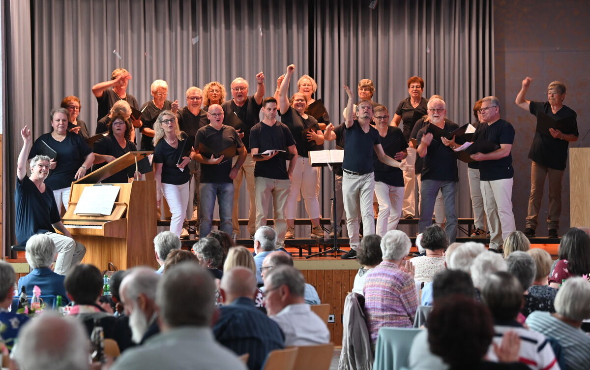 Süßigkeiten fliegen beim Liederkranz Talheim in die Zuhörer-Menge. In der Mitte der neue Dirigent Axel Göller. FOTO: MEYER