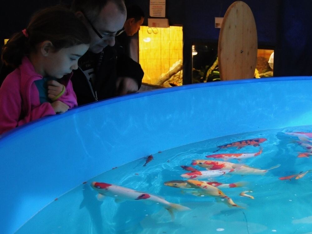 Neugierige Blicke: Im 9000 Liter fassenden Wasserbassin von Thomas Musch schwammen 20 Kois. Den Umzug aus dem Gartenteich in das extra gekaufte Becken überstanden diese unbeschadet.
