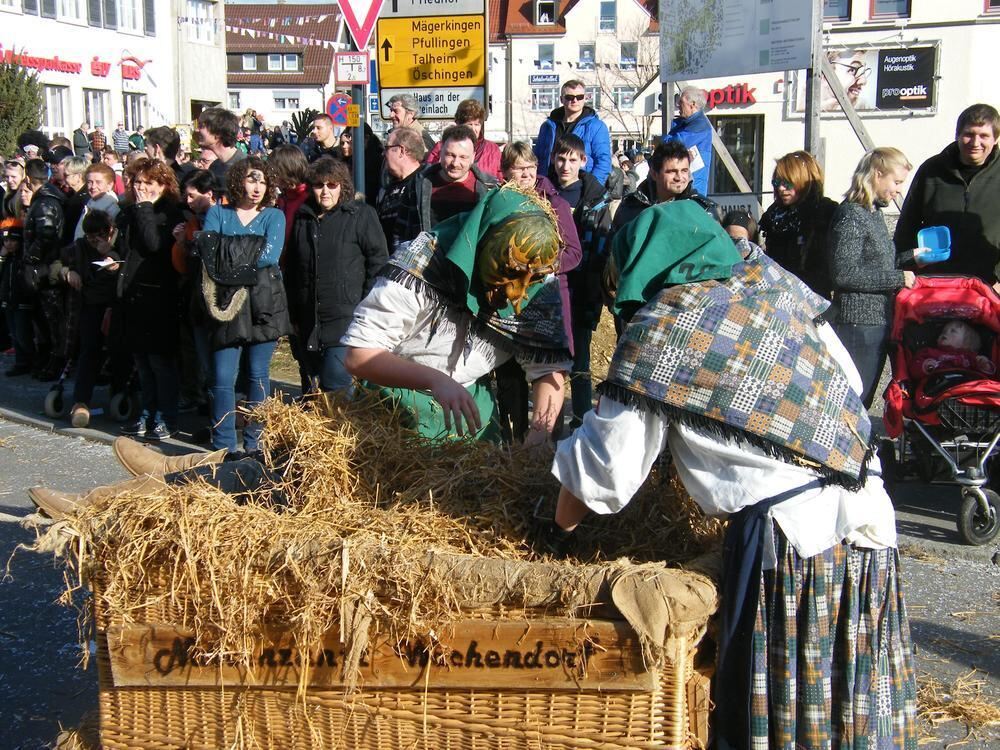 Kurzweilig gestaltet sich für die Zaungäste beim großen Umzug in Mössingen das närrische Treiben auf den Straßen. Ausgewählte Frauen konnten etwa eine Wellness-Kur der anderen Art erleben: ein Bad im Stroh, bei dem Hexen gerne behilflich waren.