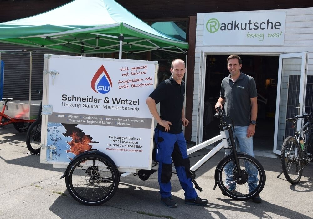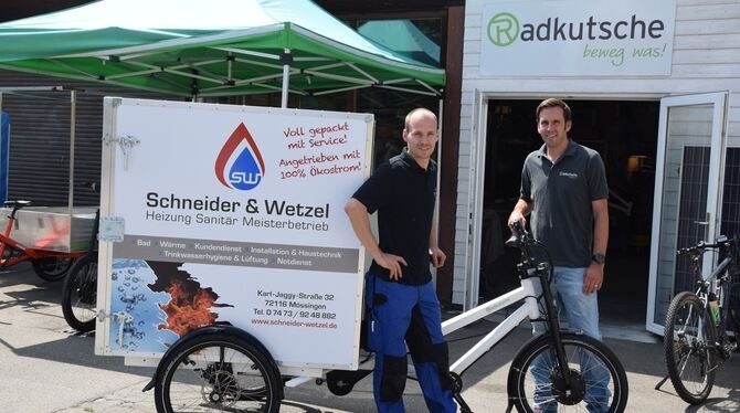 MÖSSINGEN. Ob seine Mitarbeiter sportlich sind? »Die werden's jetzt«, erklärt Simon Wetzel lachend. Der Mitgeschäftsführer des Mössinger Heizungs- und Sanitärbetriebs Schneider & Wetzel hat jüngst sein geordertes Betriebs-Lastenrad abgeholt. Mit dem werden er, sein Geschäftspartner und die beiden Lehrlinge künftig durch Mössingens Gassen radeln - eine 1,5 Kubikmeter und 300 Kilogramm fassende Box auf dem Rücksitz.