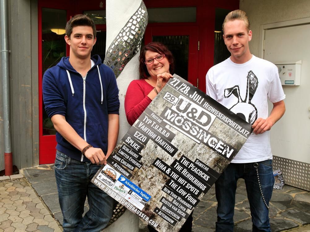 Alle Hände voll zu tun: Das neue Orgateam Marcel Valin, Stefanie Dürr, Silvan Schüssler vor dem Jugendhaus M.