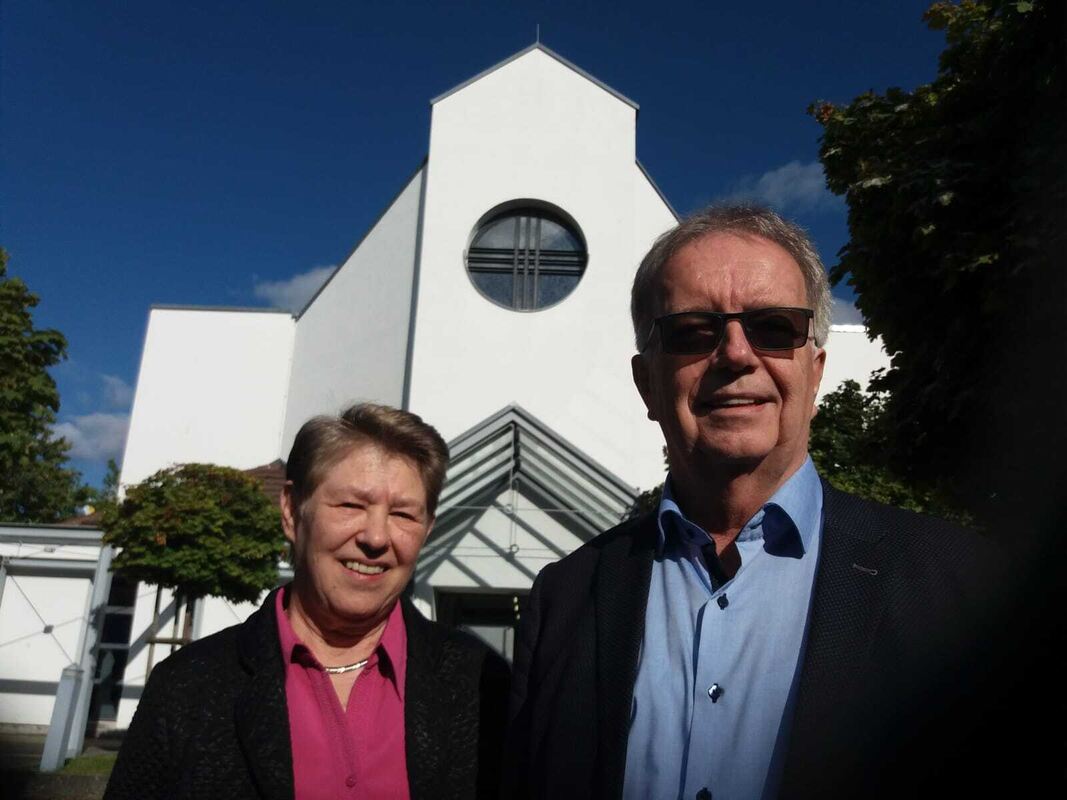 Pastoralreferentin Bärbel Kannwischer und Kirchenmusiker Helmut Kannwischer, hier am Sonntag vor der Mössinger Marienkirche, wurden nach vielen Dienstjahren in den Ruhestand verabschiedet.