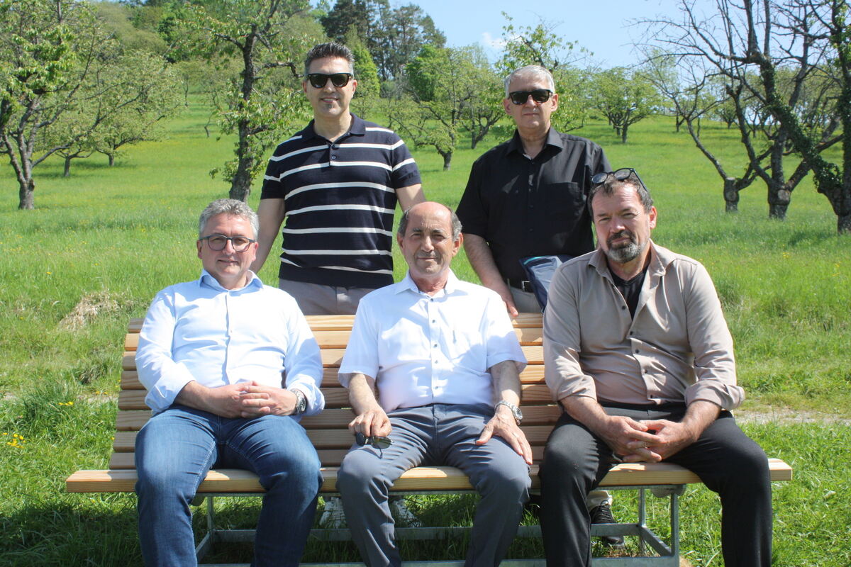 Hier lässt sich's aushalten: Grundstückpächter Nusret Eroglu sitzt hier zwischen Mössingens Oberbürgermeister Michael Bulander (links) und Marcus Hölz, Geschäftsführer der Arbeit in Selbsthilfe. Stehend von links: Eroglus Angestellte Murat Ayir und Mehmet Pekdemir.