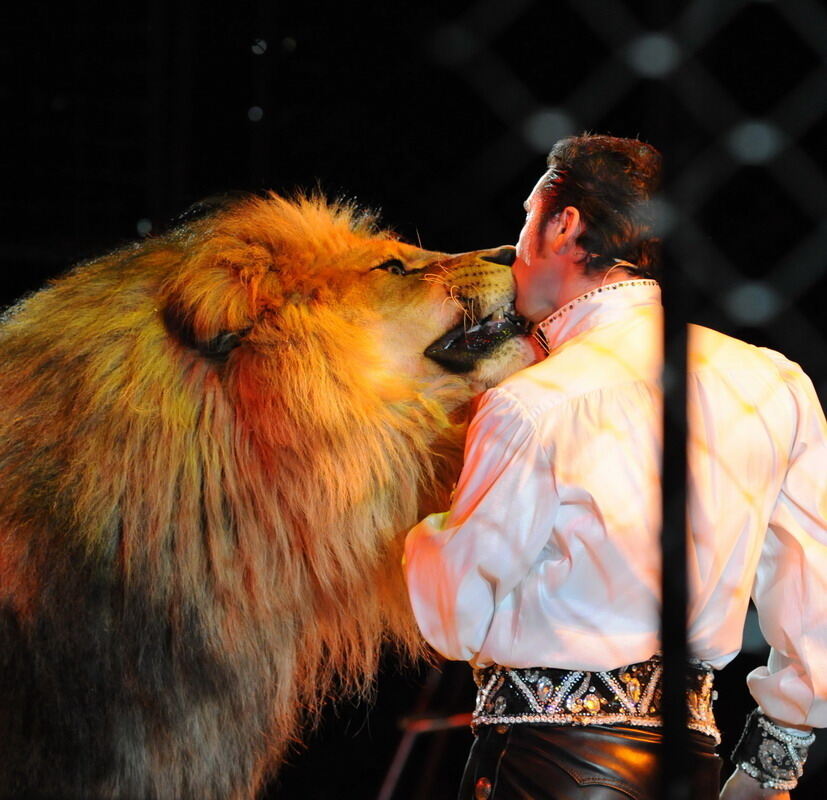 Der will bloß spielen: Martin Lacey kommt seinen Löwen gefährlich nahe.