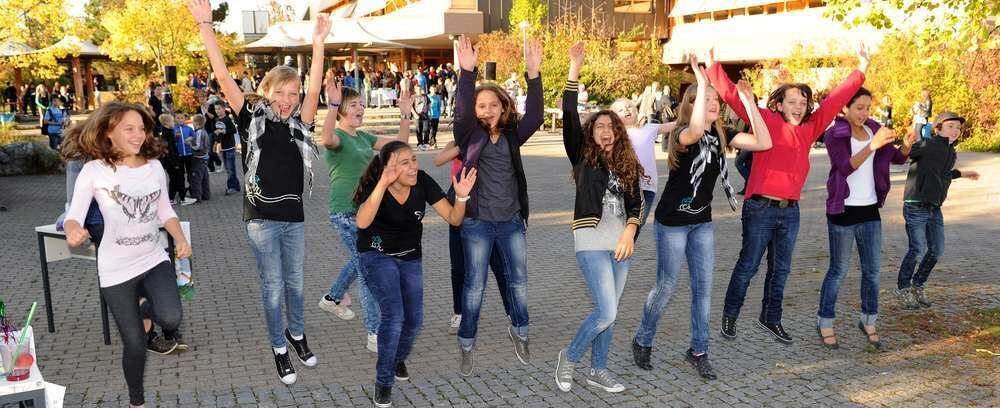 Voller Energie beim Schulfest-Tanz: Die Schüler feierten auf ihre Weise die frisch sanierte Schule. GEA-FOTO: PACHER
