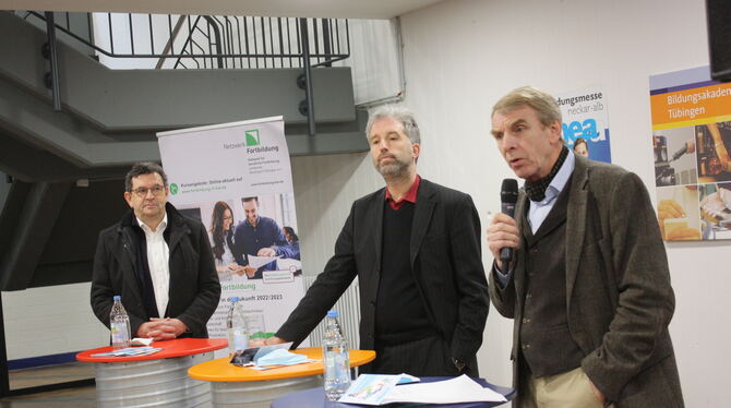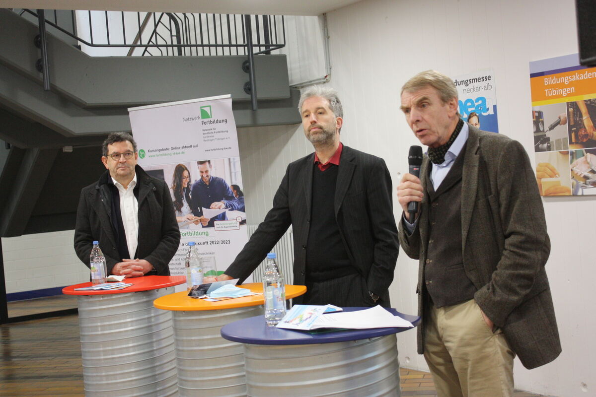 Sie eröffneten die Binea-Messe (von links): Ulrich Bausch (Sprecher der landesweit 31 Netzwerke Fortbildung), Tübingens Oberbürgermeister Boris Palmer und Harald Herrmann (Präsident der IHK Reutlingen).