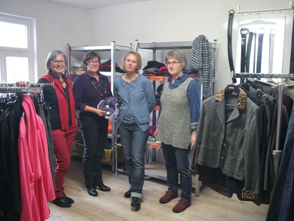 Erika Welsch, Dorothee Bold, Renate Kerth und Angela Schäfer (links) freuen sich über die neuen Räumlichkeiten im Gomaringer Schublädle. Zum Team gehören Marcilla Schumann, Elvira Fischer, Gudrun Munz und Charly Kolb.