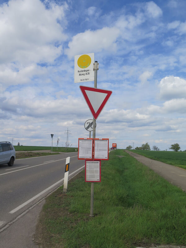 Die Bushaltestelle Abzweigung B 28, für manche irgendwo im Nirgendwo. Bisher steht hier nur ein Schild. Bald soll sie barrierefrei sein. FOTO: KREIBICH
